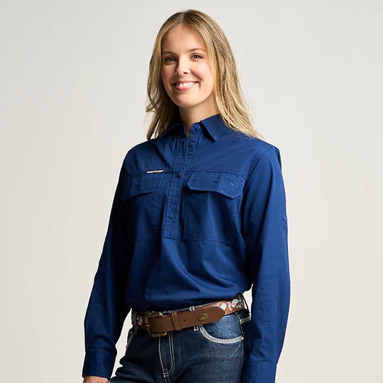 OBCWWS001-ROY SOMERSET | Womens Half Button Long Sleeve Work Shirt- Royal