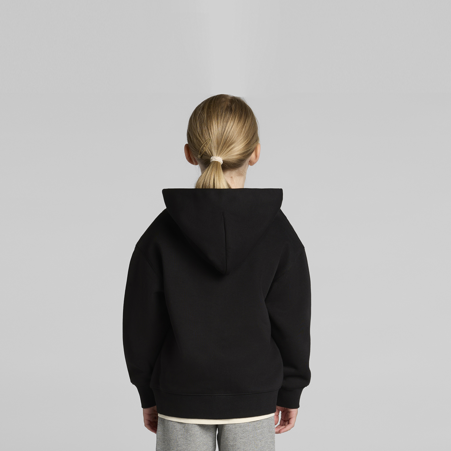 Zip hood, drop shoulder, kangaroo pocket, self-fabric lined hood, no drawcord, YKK zip, sleeve cuff ribbing